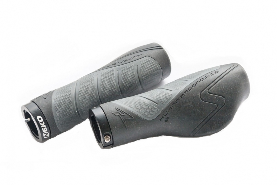 Грипсы для велосипеда Neko NKG-1911 длиной 130 мм. Эргономичная форма, дополнительная поддержка ладони. Гелиевые вставки, чтобы грипса была хваткой. Чтобы грипсы не прокручивались - нужен алюминиевый замок. Пластиковые заглушки в комплекте. Совместимы с рожками.