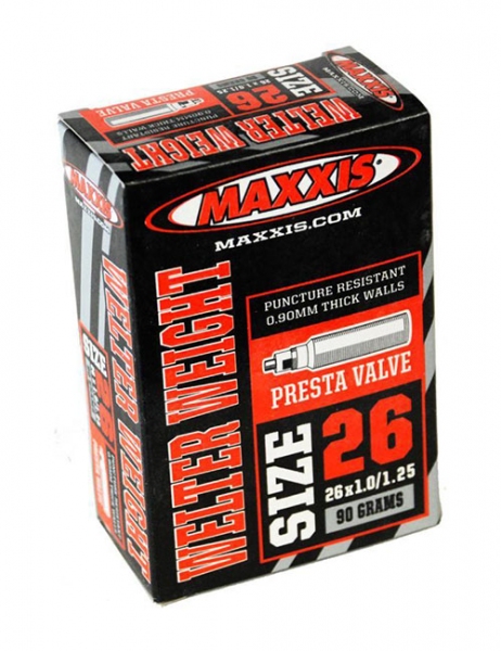 Камера для велосипеда Maxxis Welter Weight подойдет для колес размером 28 дюймов. Совместима с покрышками с шириной 25-32. Тип нипеля преста (велосипедный, французкий).