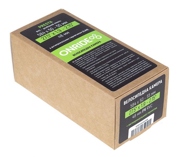 Камери ONRIDE з ніпелем Presta (FV) мають конструкцію, яка забезпечує однакову товщину бутилкаучуку. Це означає, що вони не мають зайвої ваги і плавно котяться від поїздки до поїздки. Однакова товщина - знак якості.Важливо підтримувати в камері тиск (діапазон номінальних значень вказаний на вашій покришці). Неналежний тиск може бути причиною передчасної деформації камери (проколи \ "зміїний укус" \ руйнація матеріалу через утворення складок). Проти проколів діє, заповнений в камеру, герметик Slime.