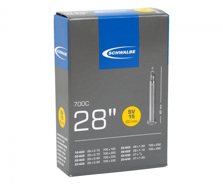 Камера для велосипеда Schwalbe SV15 для колес размером 700. Подходит под покрышки с шириной 18/28. Тип нипеля преста (велосипедный, французкий). На заводе Schwalbe время теста камеры под давлением 24 часа. Камеры для велосипедов изготавливают из бутилового каучука. Бутил это эластичная и воздухонепроницаемая синтетическая резина. Камеры Schwalbe прекрасно держат воздух. Высокая эластичность позволяет одной камере Schwalbe покрывать широкий диапазон размеров. На каждой коробке с камерой Швальба указаны: окружность покрышки, тип клапана, диапазон размеров покрышки.
