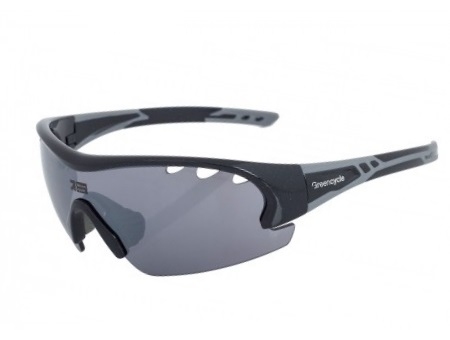 Green Cycle GC-GL8142A-P спортивные солнцезащитные велоочки. Универсальны, используйте для туризма, велопокатушек и отдыха. Степень защиты от вредного ультрафиолета UV 400. Оправа -серо-черная пластиковая и основные темно-серые поликарбонатные линзы. Носоупоры и заушники с мягкими вставками черного цвета. В комплекте две пары линз (прозрачные, желтые), жесткий чехол.