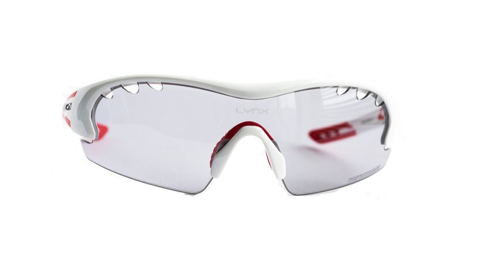 Lynx Detroit PH BB спортивные солнцезащитные велоочки. Универсальны, подойдут для туризма, велопокатушек или морского отдыха. Степень защиты от вредного ультрафиолета UV 400 (UVA, UVB, UVC). Оправа - бело-красная термопластиковая и основные фотохромные поликарбонатные линзы. Больше никаких сменных линз, которые теряются и которые нужно менять. Степень затемнения линз от 2й до 3й категории. Носоупоры резиновые, заушники с мягкими вставками белого цвета. В комплекте мягкий чехол.