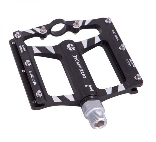 Алюминиевые педали для велосипеда Mpeda ALNC-1028 на промподшипниках со сменными шипами подойдут для горных или BMX велосипедов. Материал оси хромоль, корпуса - фрезерованный алюминий. Сменные шипы добавят педали хваткости. Крышка, закрывающая подшипник, анадирована в красный цвет. Вес пары педалей 340 грамм.