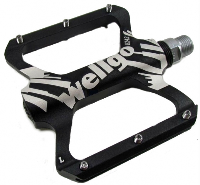 Алюминиевые педали для велосипеда Wellgo B242 на промподшипниках со сменными шипами. Подойдут для MTB и BMX.