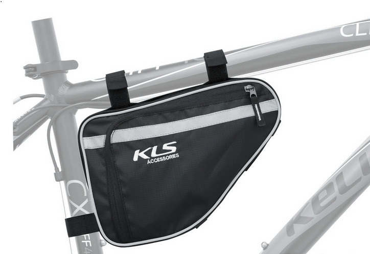 Сумка для велосипеда под раму KLS Zoffy - используйте для запасной камеры, латок, инструментов, мп3 плеера, денег или документов. Сумка крепится тремя липучками. Светоотражающие полосы на боковых сторонах. Жесткая конструкция, два отдельных кармана. На длиной стороне две резинки для крепления насоса.