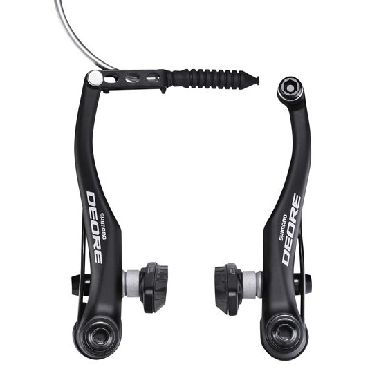 Тормоза для велосипеда Shimano Deore BR-T610 типа V-Brake среднего уровня. Алюминиевые рычаги, анодированные в черный цвет. В этой модели обновлены резиновые пыльники. Увеличено расстояние между рычагами до 107 мм, чтобы проще было установить крылья или освещение. Размер колодки 72 мм, материал колодки S70C. В комплекте болты крепления и направляющая трубка.