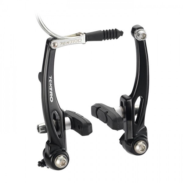 Тормоза для велосипеда Tektro 855AL начального уровня. Подойдут для велосипедов с тормозами V-Brake. Материал рычагов - алюминий. Колодки сменные, после замены нужно настроить тормоза.