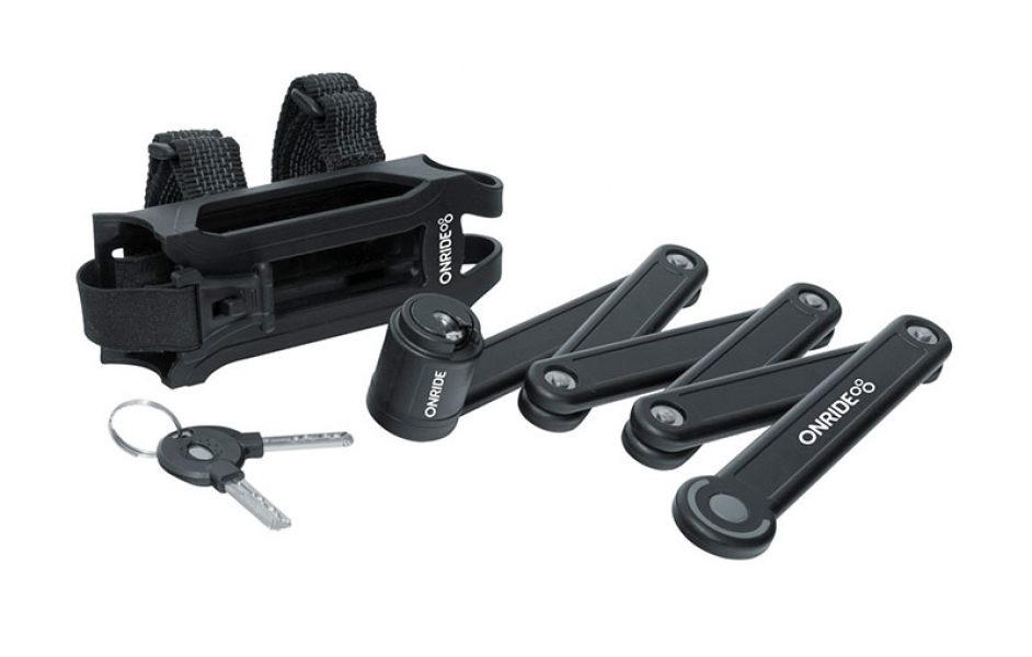 Складной замок для велосипеда OnRide Bit изготовлен из стали в ПВХ оплетке. Состоит из прямоугольных планок. Размер 850 мм, в сложенном состоянии помещается в жесткий чехол на липучке. Защитное покрытие планок убережет раму велосипеда от царапин. Тип замка английский двухсторонний, в комплекте два ключа.