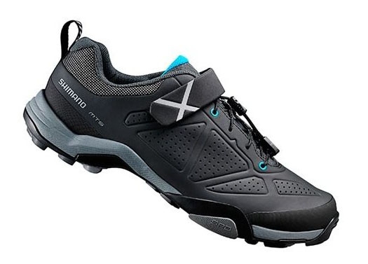 Велообувь Shimano SH-MT5-L совместимы с педалями стандарта Shimano SPD. Верх из перфорированной синтетической кожи, резиновая подошва для удобства при ходьбе. Посадка по ноге регулируется шнуровкой. Стелька специальной плоской формы дополнена материалом EVA. В холодное время года надевайте сверху бахилы. Пластины для крепления шипов идут в комплекте. Велотуфли Shimano SH-MT5-L многофункциональные, подойдут для езды на велосипеде и для ходьбы тоже.
