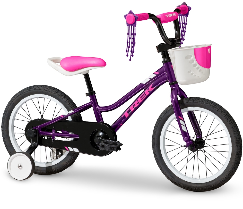 Детский велосипед 2018 Trek Precaliber 16 Girls на алюминиевой раме, с ножным тормозом подойдет для девочки 4-6 лет. Цепь и передние звезды закрыты, теперь нельзя порвать или испачкать штаны. На седле есть пластиковая ручка, чтобы взрослым было легче переносить велосипед. Детские велосипеды Trek созданы с заботой о детях, уникальная программа Trek Dialed Fit Specific - учитывает анатомические размеры детей различного возраста. Каждая деталь - рама, седло, руль - спроектированы согласно возрасту ребенка. Чтобы покатушки были безопасными, детям нужны велошлем и перчатки.