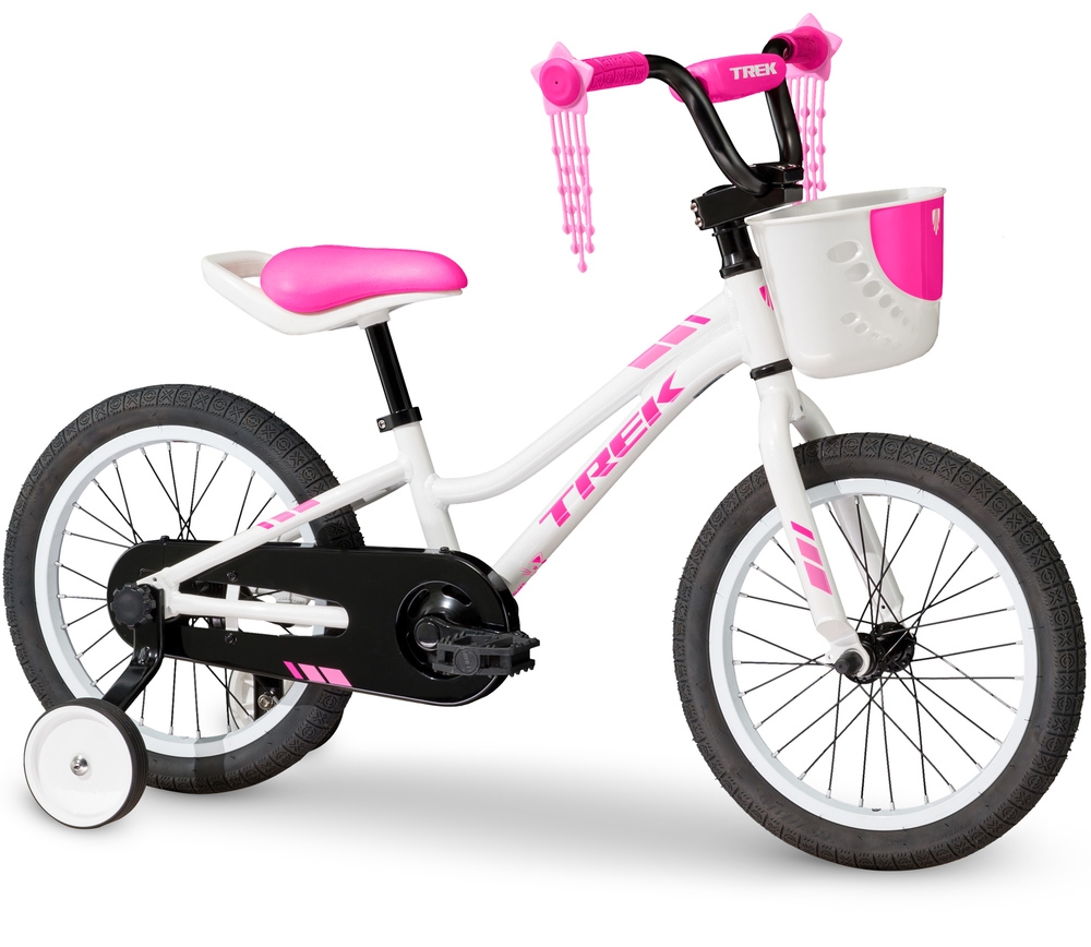 В комплекте велосипеда 2019 Trek Precaliber 16 Girls - защита шатунов, катафоты, звонок, корзинка на руле, металлические крылья, паспорт на велосипед. Тренировочные колеса снимаются без инструментов. На седле удобная ручка, чтобы переносить велосипед.