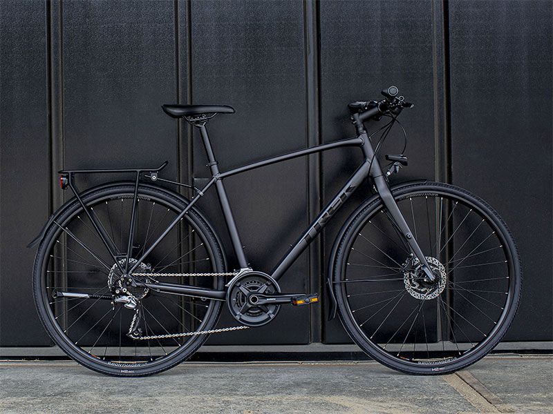 Городской велосипед 2021 Trek FX 3 - рама Alpha Silver Aluminium с внутренней прокладкой тросов переключателей, рубашек и гидролиний, с интегрированным крепежом подножки и багажник. В 2021 году Trek FX 3 комплектуется трансмиссией Shimano Acera 2х9.