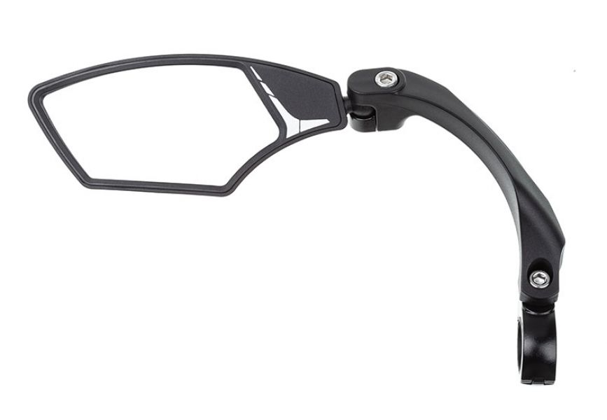Дзеркало заднього виду - це один з важливих елементів безпеки велосипедиста, адже дозволяє контролювали ситуацію позаду. HD дзеркало дозволить чітко розрізняти об'єкти, які наближаються та зменшує інтенсивність бліків на 75%. Панорамна лінза дозволить збільшити кут огляду, а кріплення на шарнірі допоможе знайти ідеальний кут огляду. Монтаж дзеркала на кермі в значній мірі підвищує стійкість конструкції завдяки надійному алюмінієвому кріпленню.